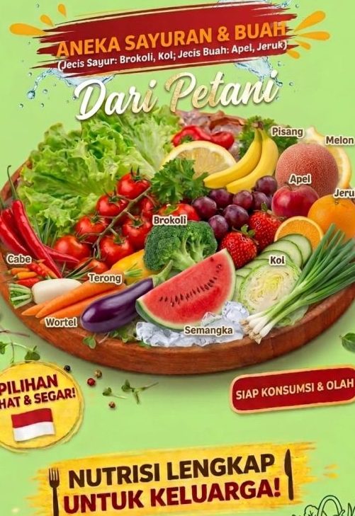 Aneka sayur mayur dan Buah buahan segar pilihan berasal langsung dari petani di wilayah jawa barat,Cipanas dan sekitarnya.